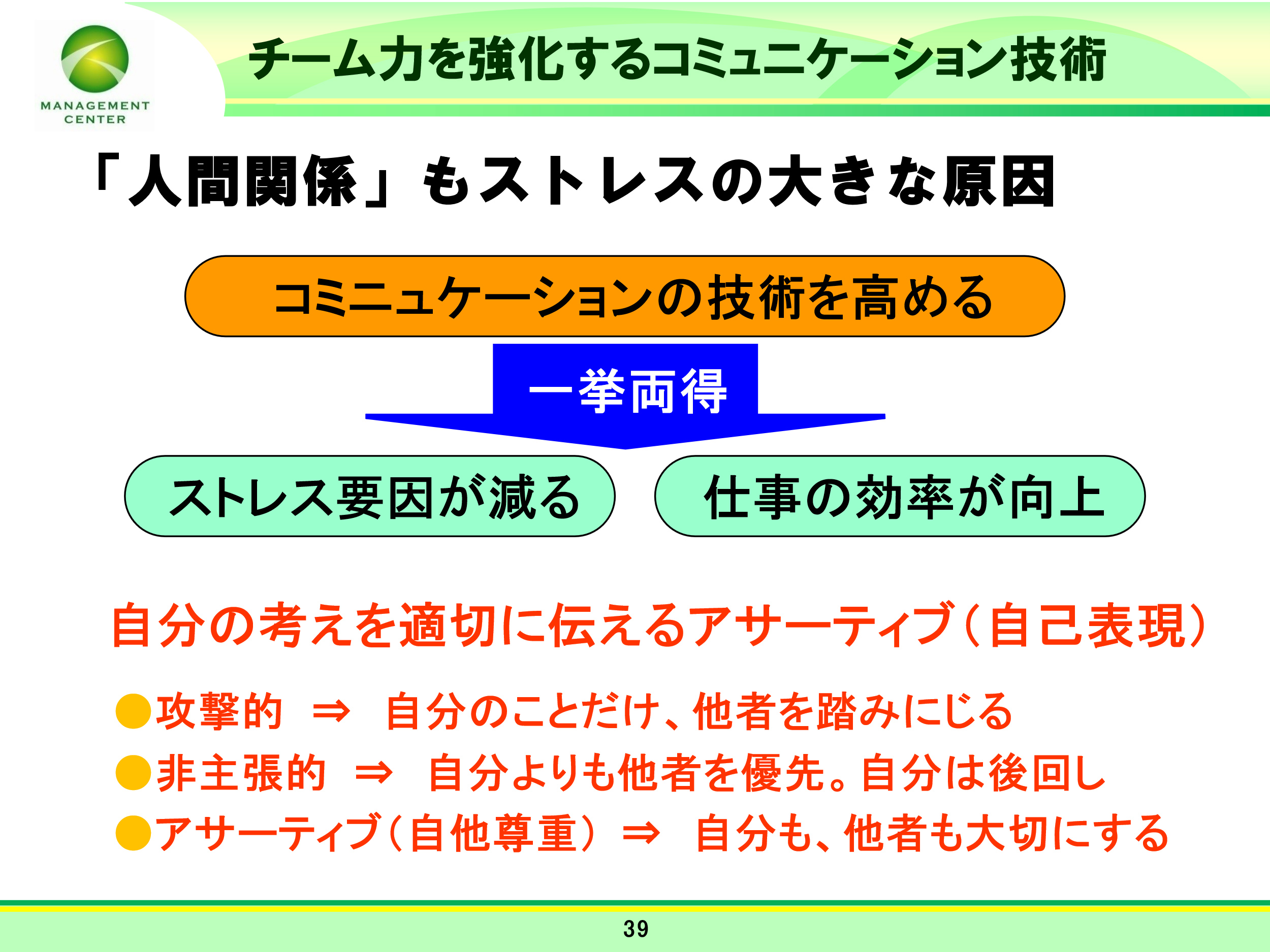 職場のチームワークが改善し、業績がアップします。